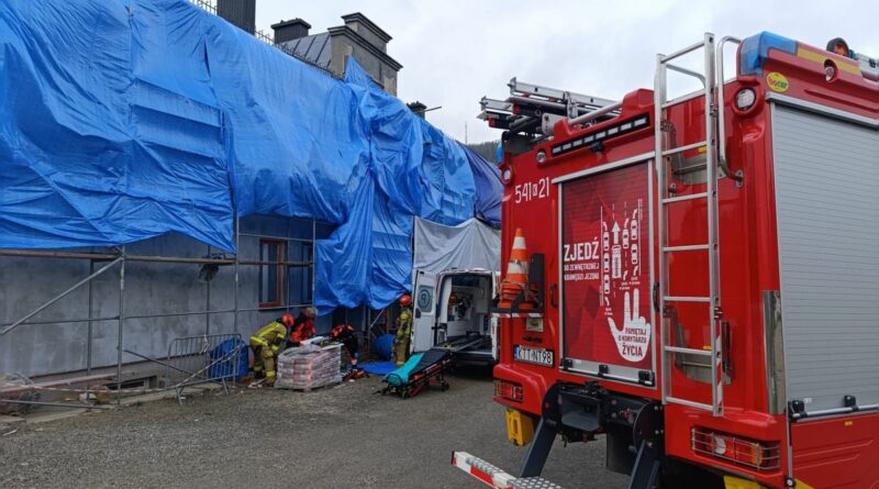W Zakopanem przy ul. Nowotarskiej podczas prac budowlanych z rusztowania spadł budowlaniec. Mężczyzna z licznymi obrażeniami ciała trafił do zakopiańskiego szpitala. Na miejscu pracowali śledczy i inspektor PIP.