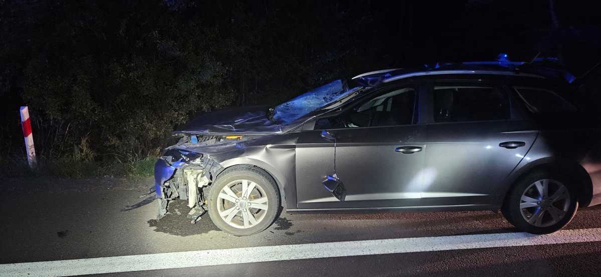 Na miejsce skierowano policję, straż pożarną oraz zespół ratownictwa medycznego. Auto zostało poważnie uszkodzone, jednak – co najważniejsze – jego kierowca wyszedł z całej sytuacji bez poważnych obrażeń. Mężczyzna opuścił pojazd o własnych siłach, nie wymagał hospitalizacji. Zwierzę nie przeżyło zdarzenia. Policjanci prowadzili działania na miejscu zdarzenia, a ruch na trasie przez pewien czas odbywał się wahadłowo.